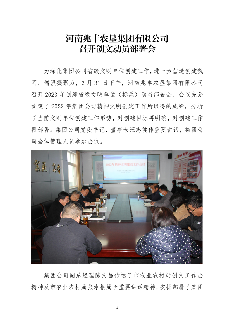 · 河南兆豐農(nóng)墾集團(tuán)有限公司組織召開(kāi)文明單位創(chuàng)建動(dòng)員部署會(huì)