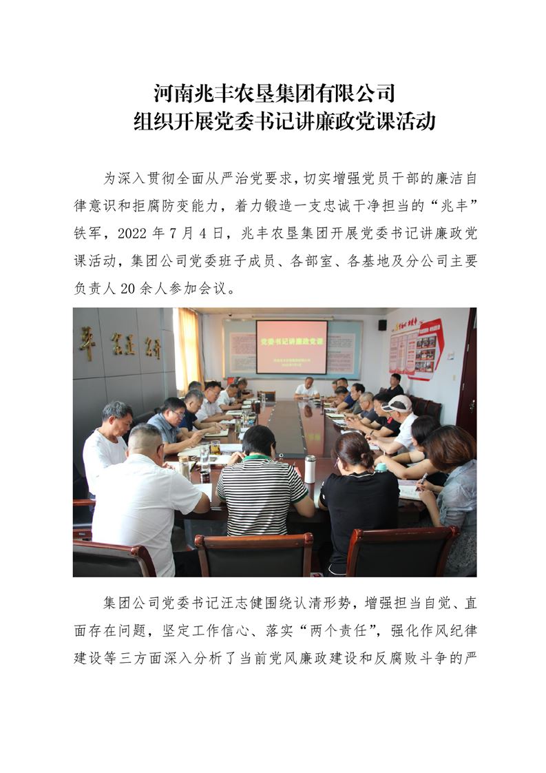 · 河南兆豐農(nóng)墾集團(tuán)有限公司 組織開展黨委書記講廉政黨課活動(dòng)
