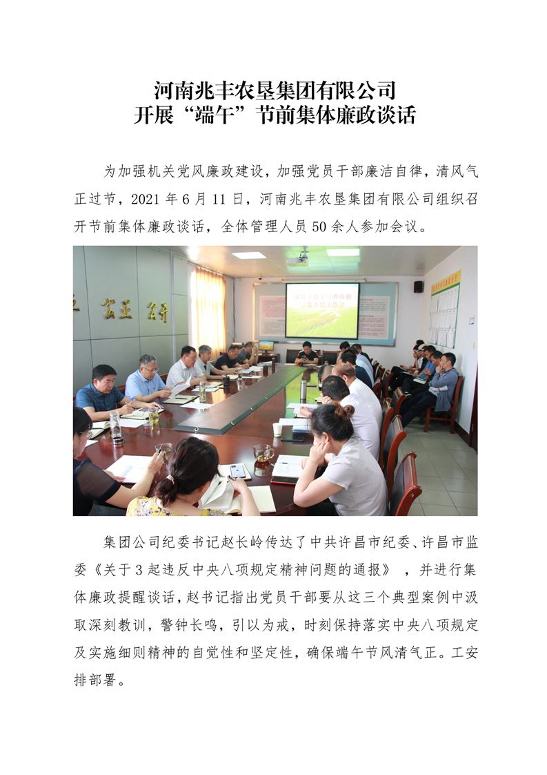 · 河南兆豐農墾集團有限公司 開展“端午”節前集體廉政談話