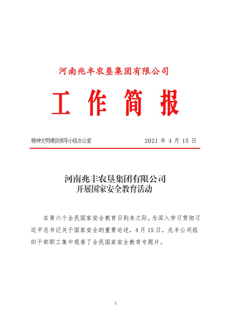 · 河南兆豐農(nóng)墾集團(tuán)有限公司 開展國(guó)家安全教育活動(dòng)