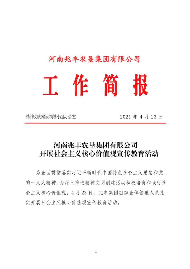 · 河南兆豐農(nóng)墾集團(tuán)有限公司 開展“社會主義核心價(jià)值觀”宣傳教育活動(dòng)