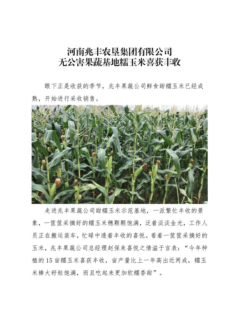· 河南兆豐農(nóng)墾集團(tuán)有限公司 無公害果蔬基地糯玉米喜獲豐收