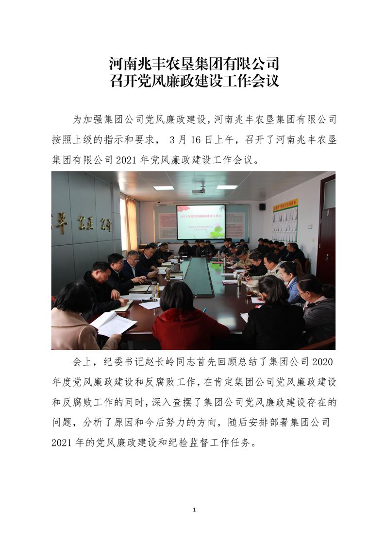 · 河南兆豐農墾集團有限公司 召開黨風廉政建設工作會議