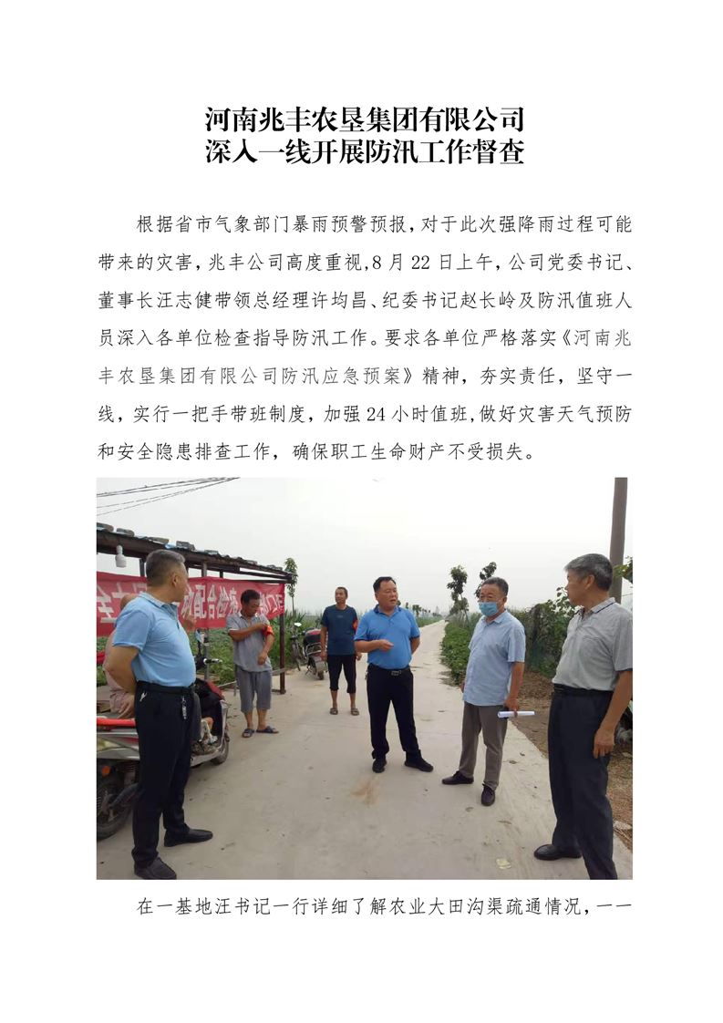 · 河南兆豐農墾集團有限公司 深入一線開展防汛工作督查