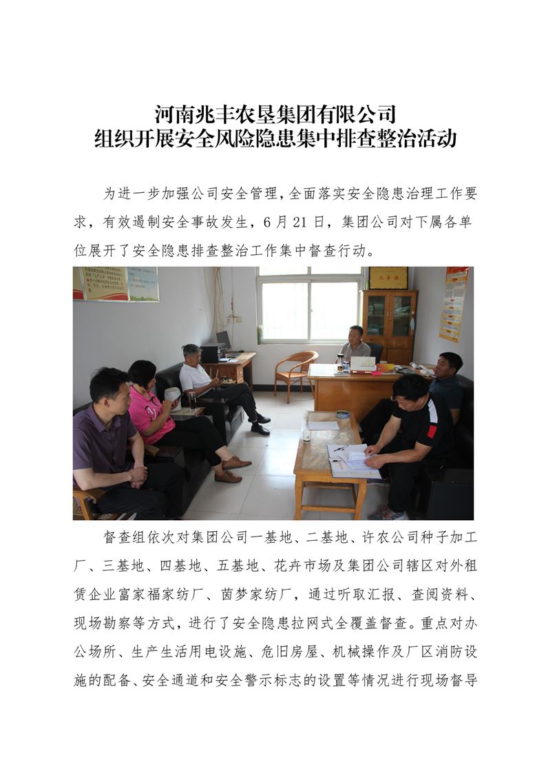 · 河南兆豐農墾集團有限公司 組織開展安全風險隱患集中排查整治活動