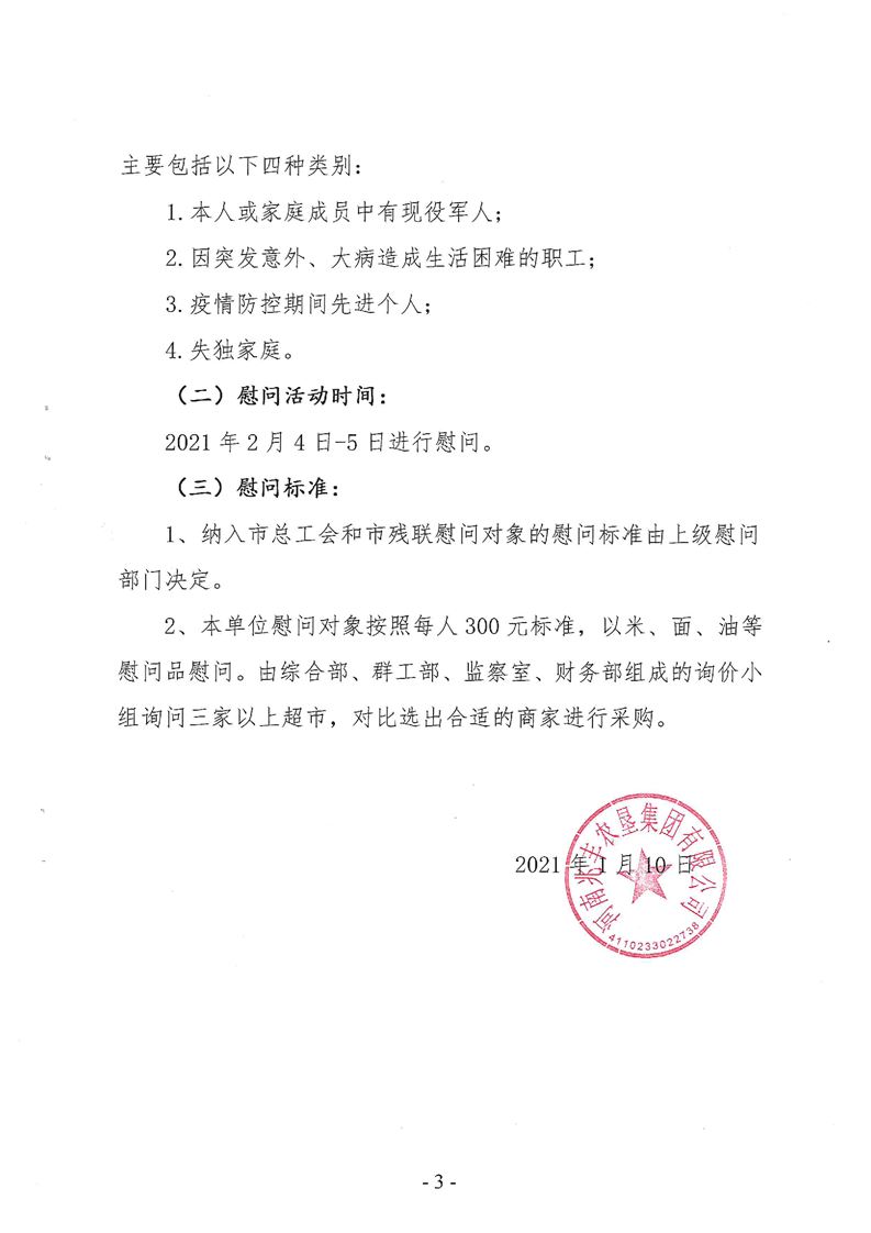 · 河南省兆豐農墾集團有限公司 2021年春節慰問活動方案