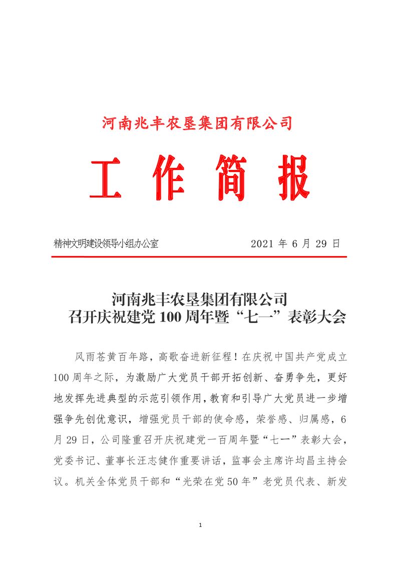 · 河南兆豐農(nóng)墾集團(tuán)有限公司 召開慶祝建黨100周年暨“七一”表彰大會(huì)