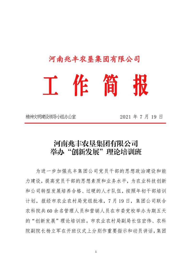 · 河南兆豐農(nóng)墾集團(tuán)有限公司 舉辦“創(chuàng)新發(fā)展”理論培訓(xùn)班