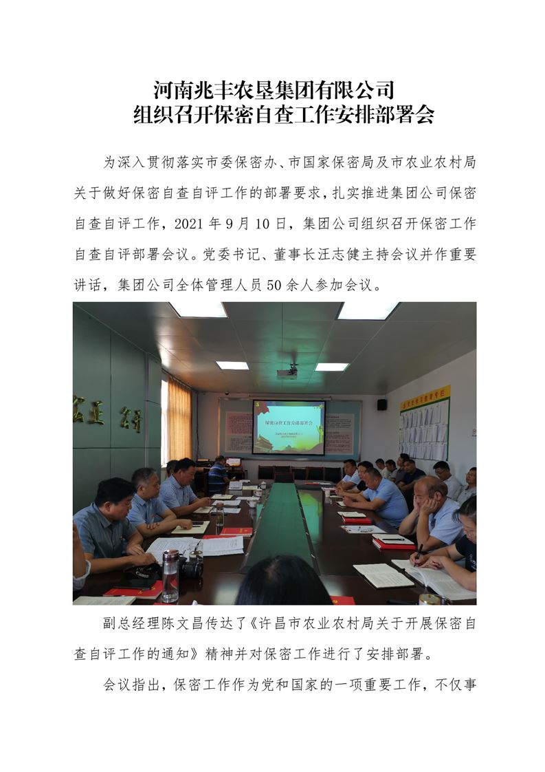 · 河南兆豐農墾集團有限公司 組織召開保密自查工作安排部署會
