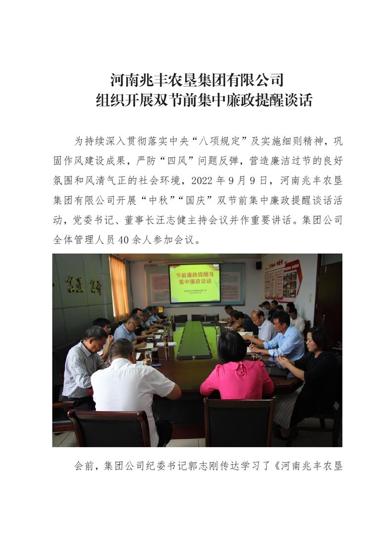 · 河南兆豐農墾集團有限公司 組織開展雙節前集中廉政提醒談話
