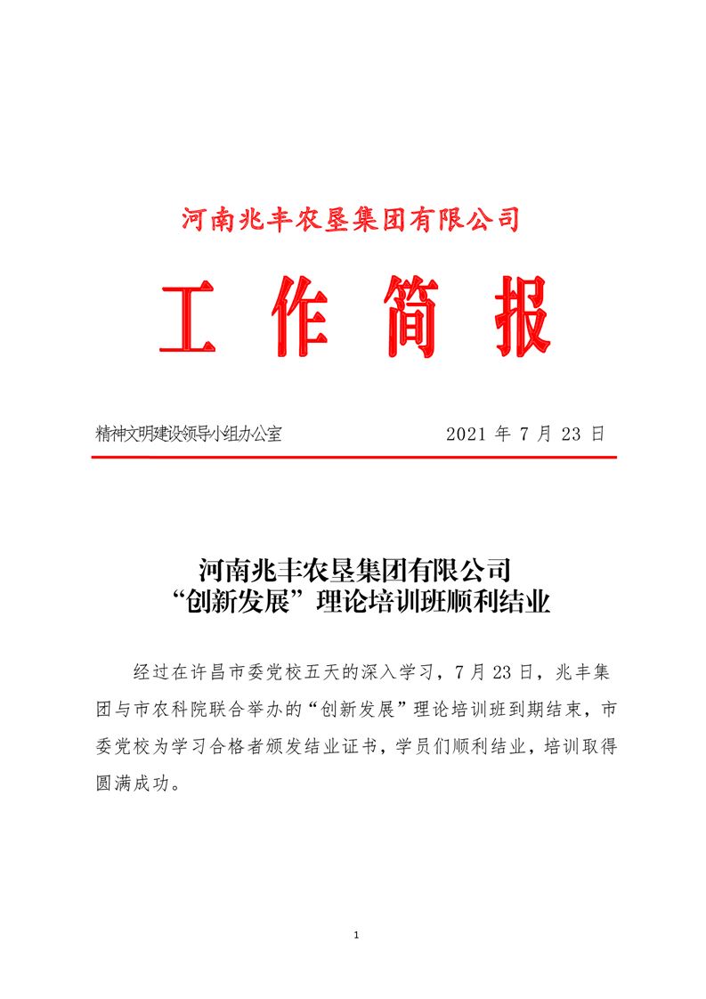 · 河南兆豐農墾集團有限公司“創新發展”理論培訓班順利結業