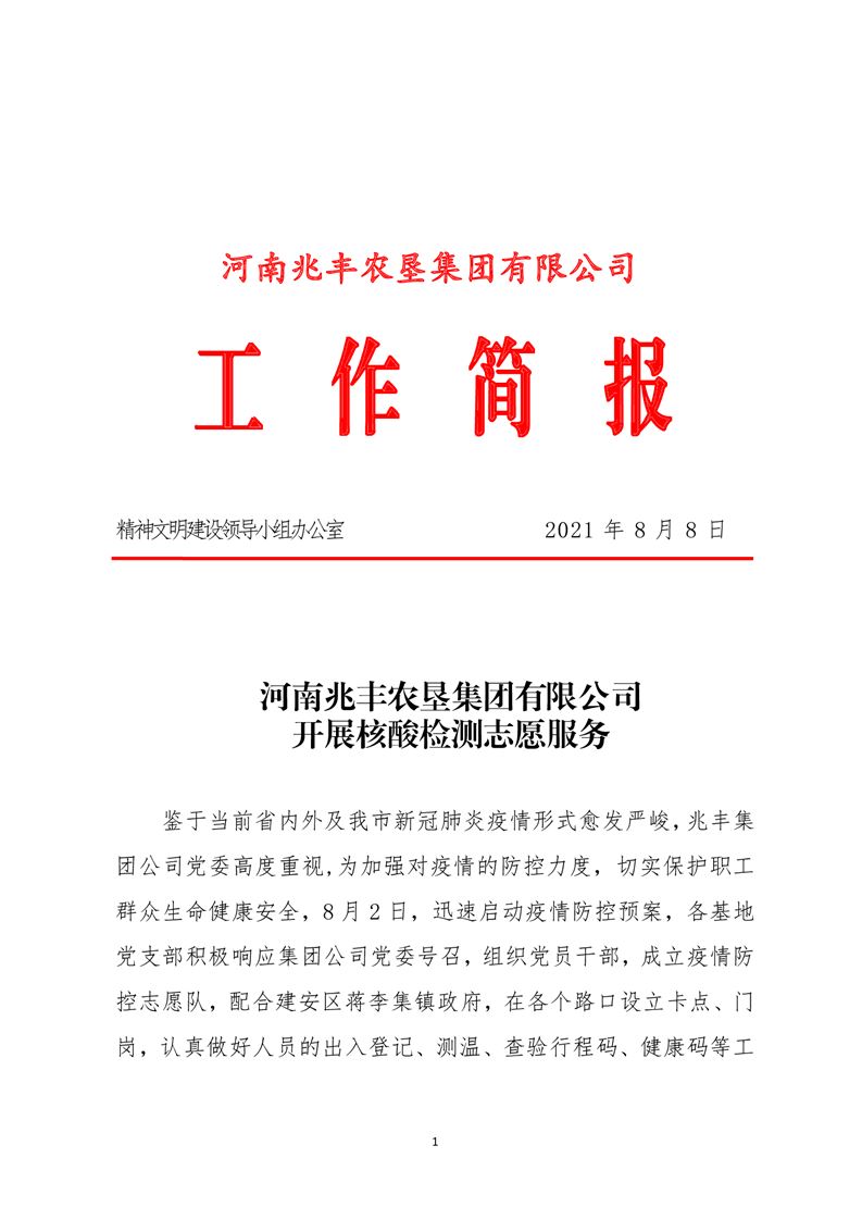 · 河南兆豐農墾集團有限公司 開展核酸檢測志愿服務