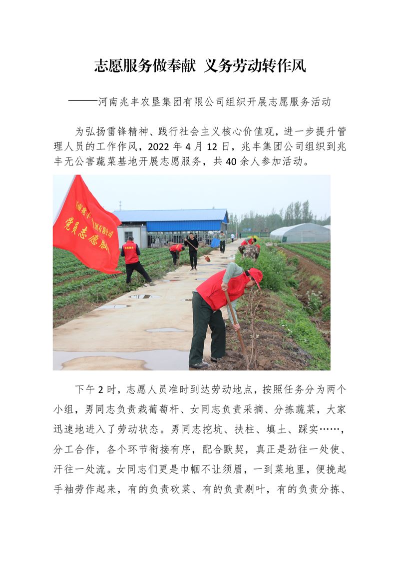 · 志愿服務做奉獻 義務勞動轉作風 ——河南兆豐農墾集團有限公司組織開展志愿服務活動