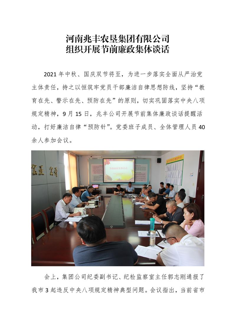 · 河南兆豐農墾集團有限公司 組織開展中秋、國慶節前廉政集體談話