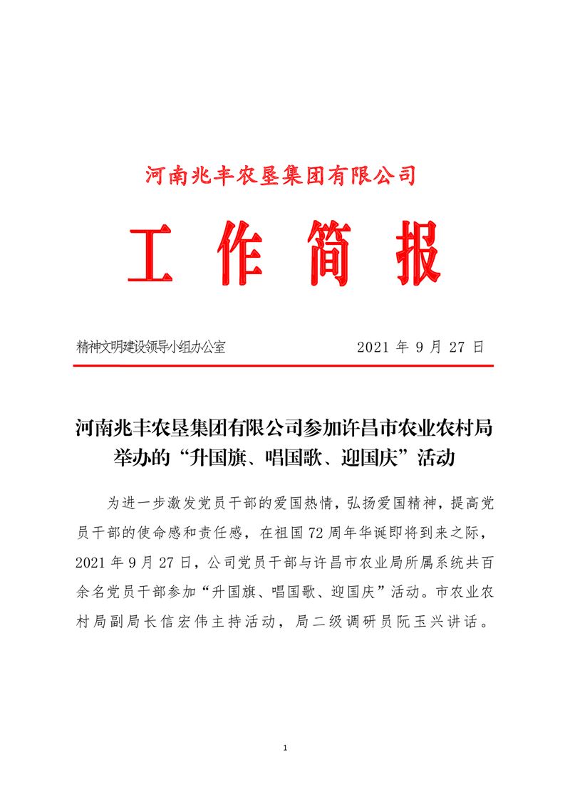 · 河南兆豐農墾集團有限公司 參加許昌市農業農村局 舉辦的“升國旗、唱國歌、迎國慶”活動
