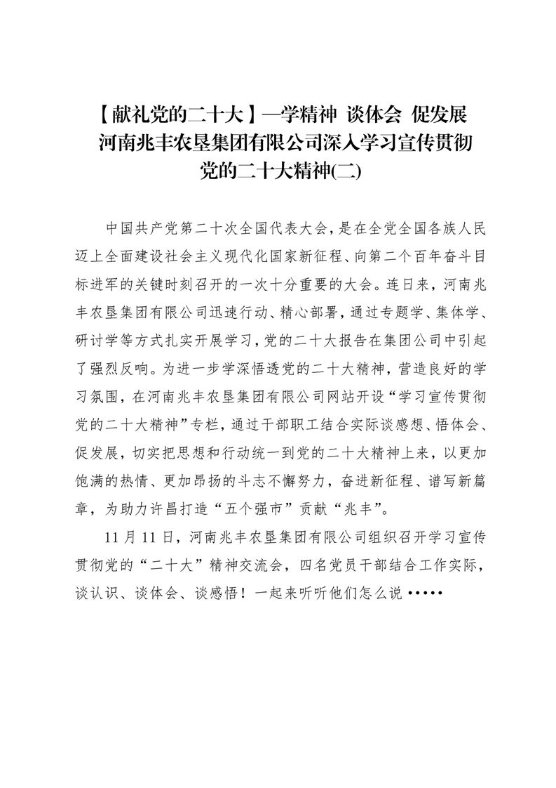 · 【獻(xiàn)禮黨的二十大】—學(xué)精神 談體會 促發(fā)展 河南兆豐農(nóng)墾集團(tuán)有限公司深入學(xué)習(xí)宣傳貫徹 黨的二十大精神(二)