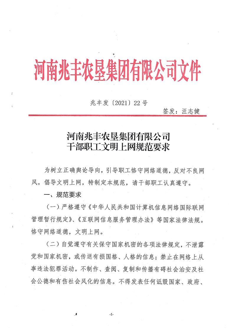 · 河南兆豐農(nóng)墾集團有限公司 干部職工文明上網(wǎng)規(guī)范要求