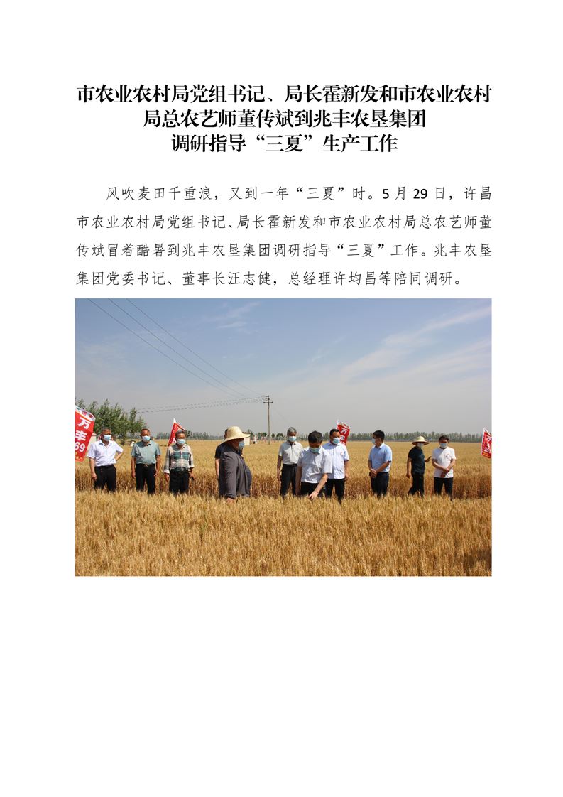 · 農業農村局黨組書記、局長霍新發和市農業農村局總農藝師董傳斌到兆豐農墾集團 調研指導“三夏”生產工作