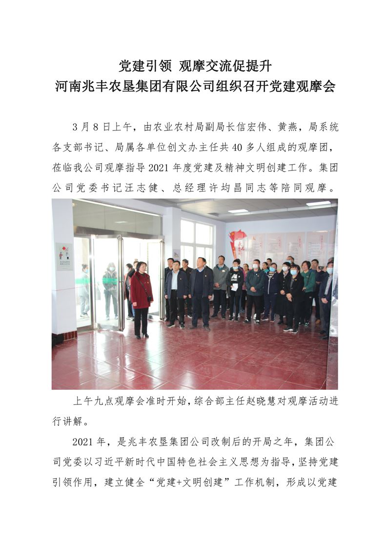 · 黨建引領 觀摩交流促提升 河南兆豐農墾集團有限公司組織召開黨建觀摩會