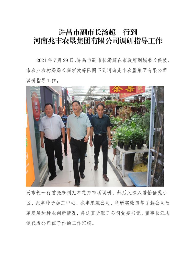 · 許昌市副市長湯超一行到河南兆豐農墾集團有限公司 調研指導工作