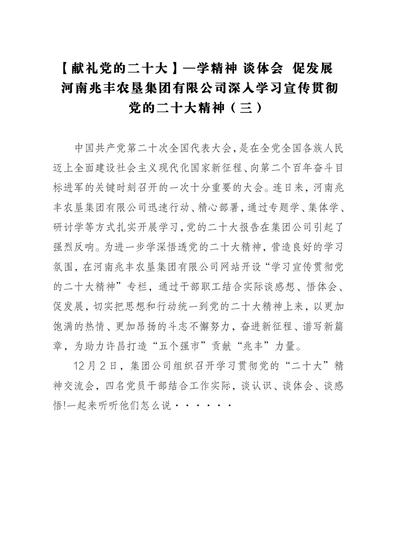 · 【獻禮黨的二十大】—學精神?談體會 促發展? 河南兆豐農墾集團有限公司深入學習宣傳貫徹黨的二十大精神(三)